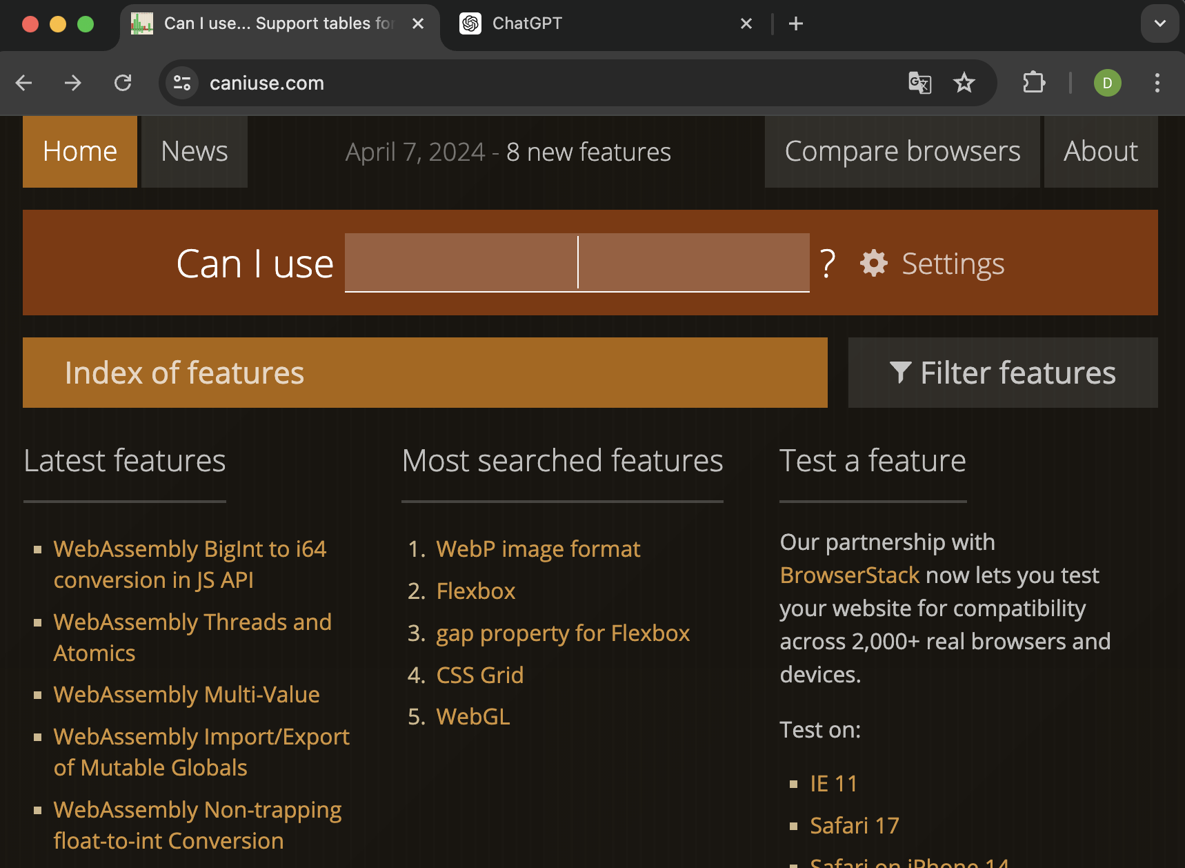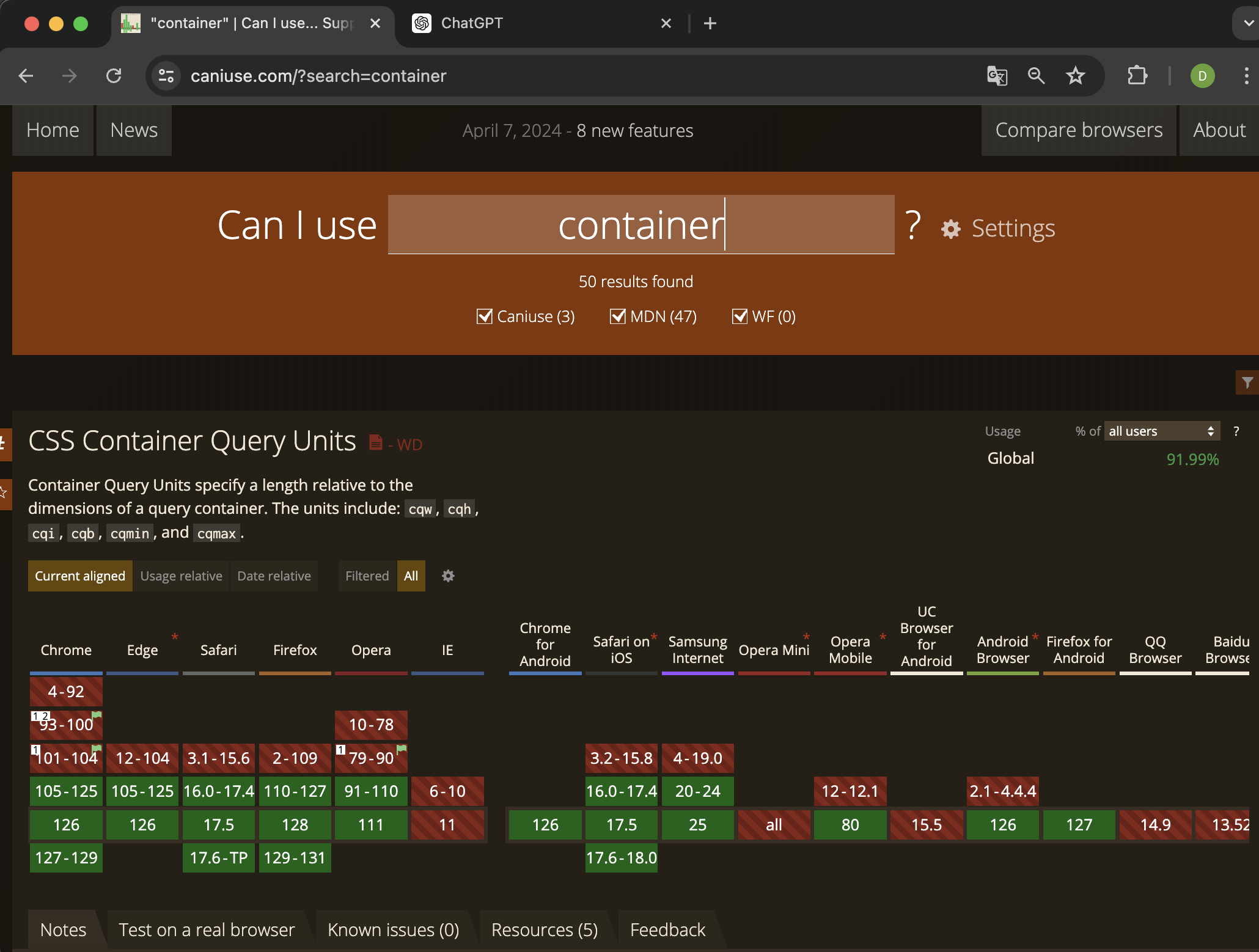 Can I Use 에서 내가 사용한 코드가 어디까지 지원하는지 확인할 수 있다.