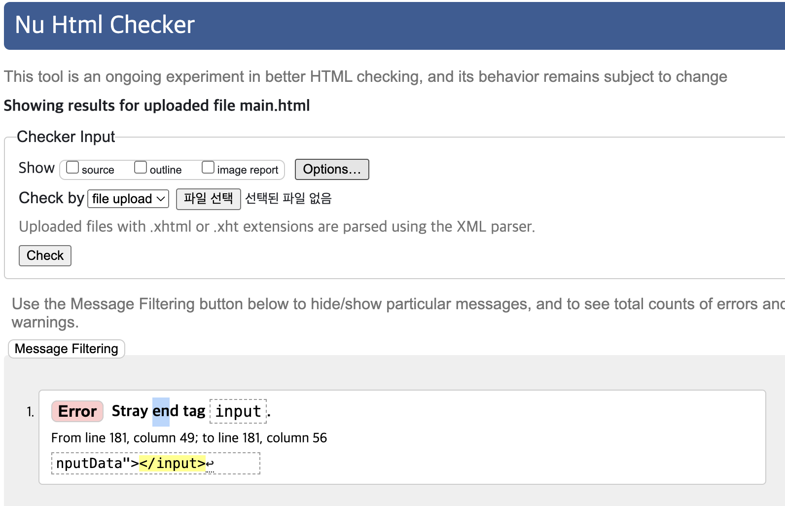 다시 좀 찝찝한 결과가 나왔다. 확인해보니 input태그 뒤에 슬래시도 없애도 별 문제가 없다고 한다.
