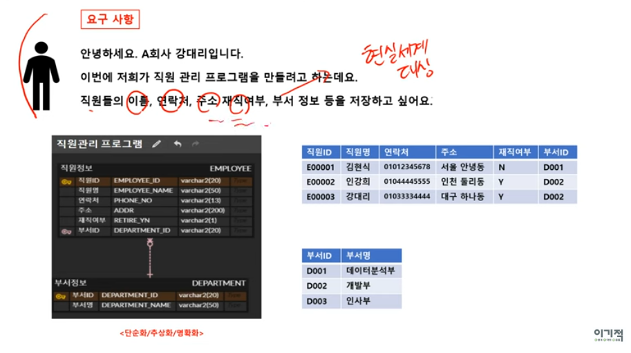 : 현실세계의 대상을 추상화, 단순화, 명확화 하여 데이터베이스로 표현하는 것.