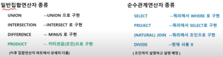 - 관계형 DBMS (Relational DBMS, RDBMS)