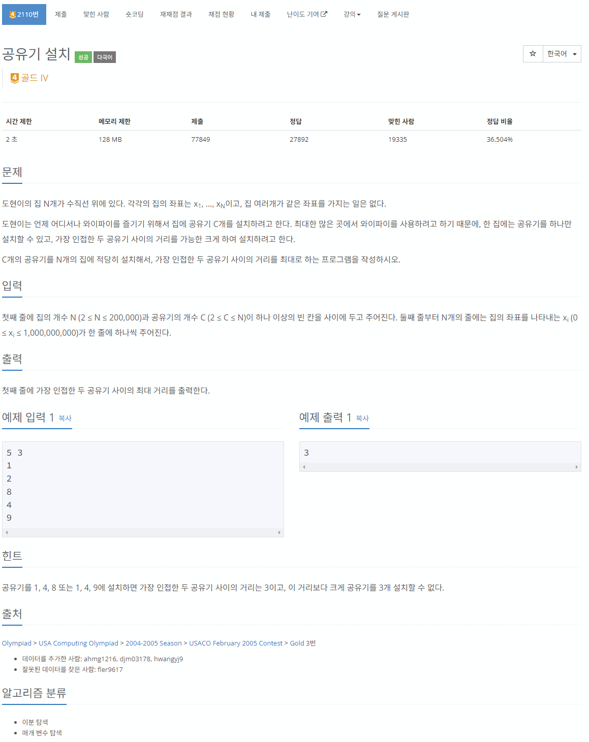 - 이진탐색을 공유기 사이에 거리에 써야하는 것