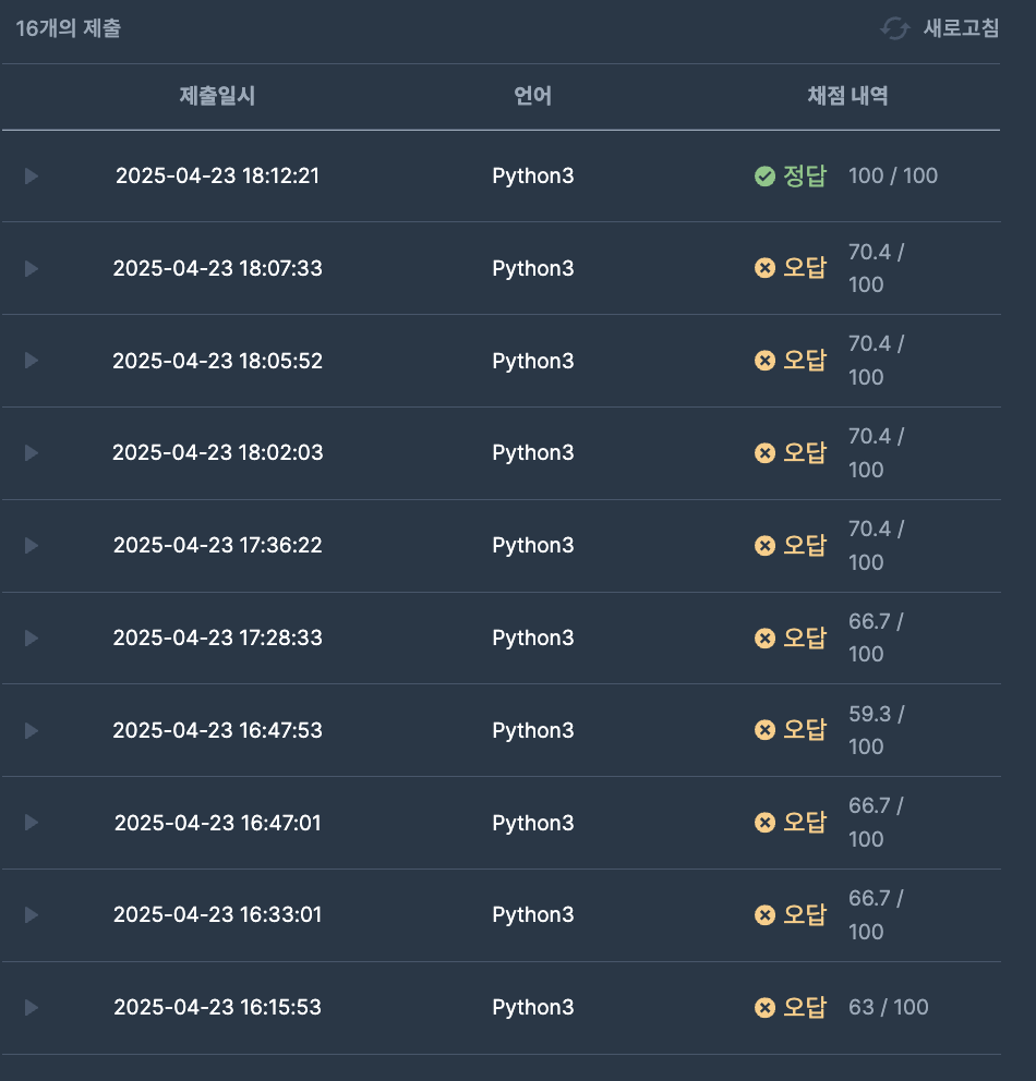 그런데 내가 하루종일 찾은 테스트케이스는 모두 통과되는 상태임.