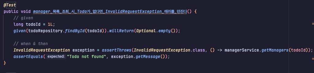 이거는 기대 메시지 문제였음 Manager not found -> Todo not found로 바꾸고 에러도 이름 바꿔줌
