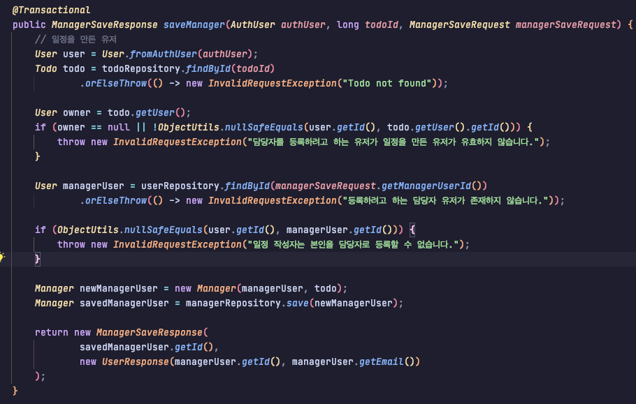 -> 따라서 todo.getUser()에 대한 null 체크를 따로 해준다.