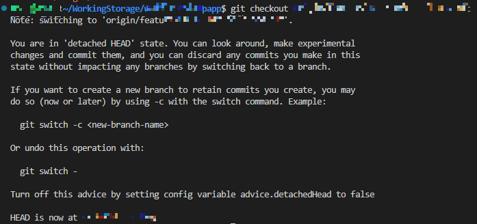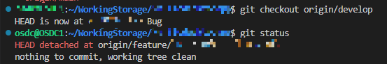 아 내가 checkout 할 때 -b 옵션(브랜치 이름을 변경해서 가져올 수 있는 옵션, 로컬 저장소를 만들 수 있는 옵션) 혹은 -t(원격 브랜치를 이름 변경없이 로컬 저장소를 만들 수 있는 옵션)을 추가하여 명령어를 실행하지 않아서 임시로 해당 브랜치로 이동하게 되었고, 따라서 로컬 브랜치가 만들어지지 않았음. 그래서 HEAD detached at 상태였다.